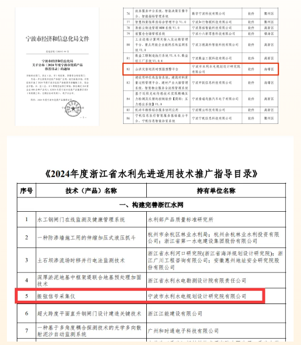 喜報(bào) | 我院三項(xiàng)成果先后入選《2024年度寧波市優(yōu)質(zhì)產(chǎn)品推薦目錄》《2024年度浙江省水利先進(jìn)適用技術(shù)推廣指導(dǎo)目錄》