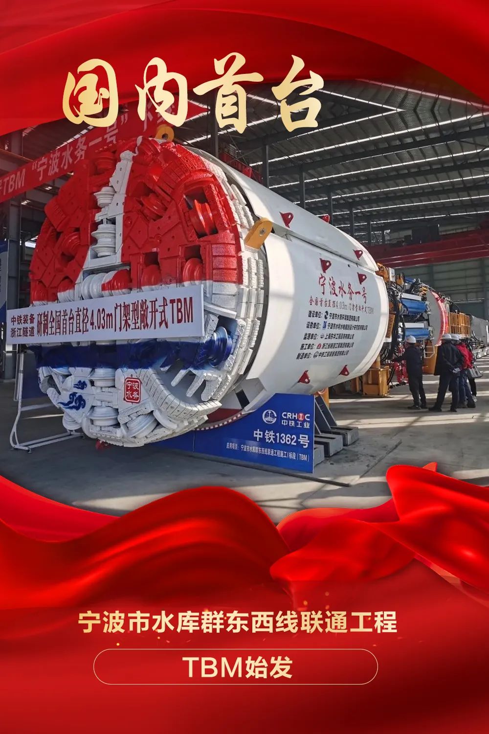 寧波市水庫群東西線聯(lián)通工程:輸水線路總長約40.96公里,工程設計輸水規(guī)模為40萬噸/日,開工以來,TBM掘進多次刷新全國同類斷面記錄;