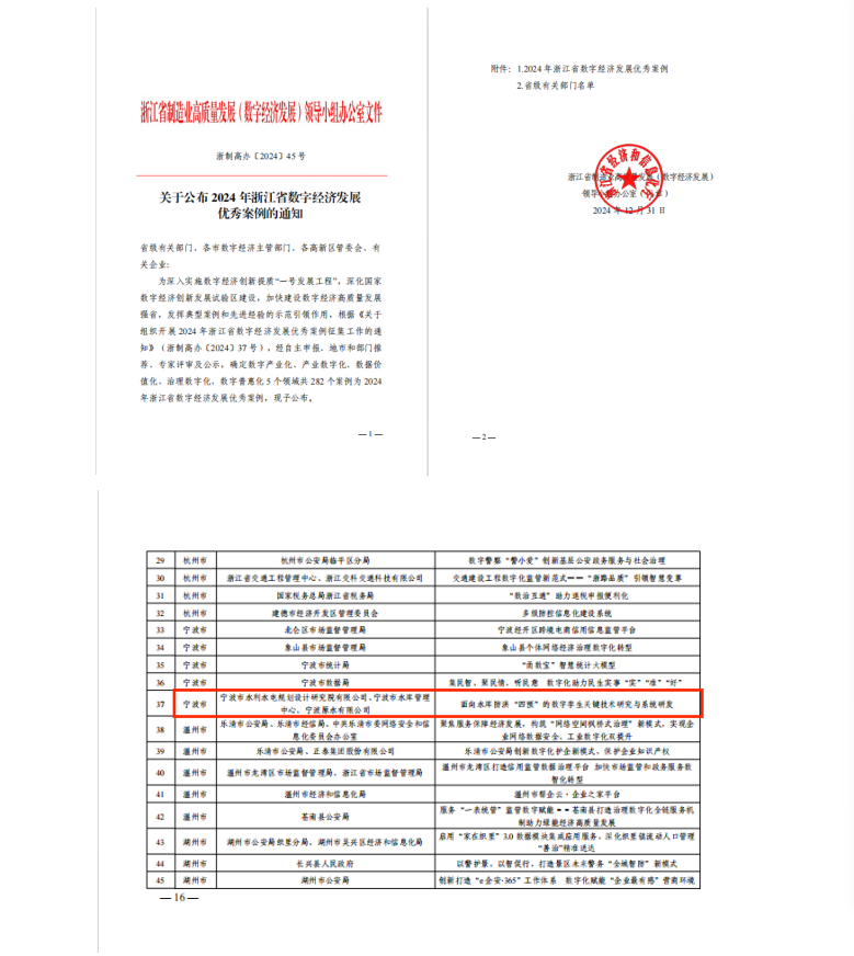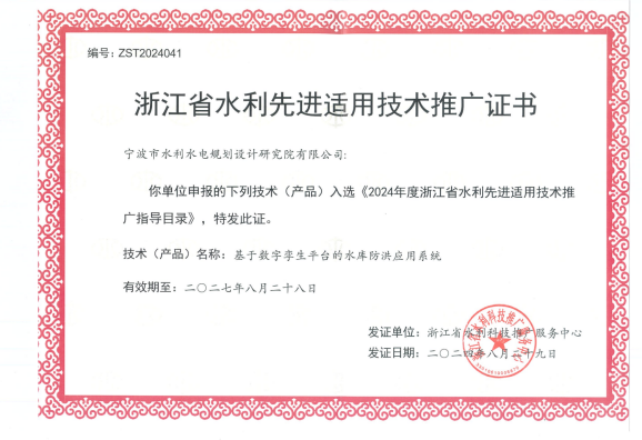 在產(chǎn)品創(chuàng)新方面,分別獲得第三屆寧波市專利創(chuàng)新大賽專利優(yōu)秀獎、“寧波市優(yōu)秀軟件產(chǎn)品”稱號、2024年“數(shù)據(jù)要素x”大賽浙江分賽獲優(yōu)勝獎,入選2024年度浙江省水利先進適用技術推廣指導目錄、2024年度寧波市優(yōu)質產(chǎn)品推薦目錄和2024年浙江省數(shù)字經(jīng)濟發(fā)展優(yōu)秀案例近20項。