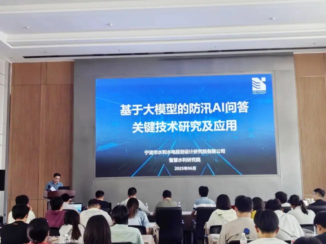 在第二日的講座報(bào)告與交流環(huán)節(jié)中,我院智慧水利研究院院長(zhǎng)顧巍巍以“基于大模型的防汛AI問答關(guān)鍵技術(shù)研究及應(yīng)用”為題,通過現(xiàn)場(chǎng)演示防汛智能AI問答系統(tǒng),生動(dòng)展示了人工智能技術(shù)在防汛決策支持中的創(chuàng)新應(yīng)用;基礎(chǔ)研發(fā)部總監(jiān)陳龍贊圍繞“甬水院模型平臺(tái):從甬江流域模型到澤圖”,詳細(xì)闡述了我院自主研發(fā)的水利計(jì)算模型平臺(tái)的技術(shù)演進(jìn)歷程和核心優(yōu)勢(shì);防災(zāi)減災(zāi)部總監(jiān)江雨田則通過播放數(shù)字孿生水庫(kù)建設(shè)視頻,結(jié)合“數(shù)字孿生水庫(kù)建設(shè)關(guān)鍵技術(shù)及應(yīng)用”的專題報(bào)告,直觀呈現(xiàn)了數(shù)字孿生技術(shù)在水庫(kù)智慧化管理中的實(shí)踐成果。三位專家的授課既有理論深度,又包含豐富的實(shí)踐案例,系統(tǒng)解析了智慧水利領(lǐng)域關(guān)鍵技術(shù)的研發(fā)路徑與創(chuàng)新應(yīng)用。