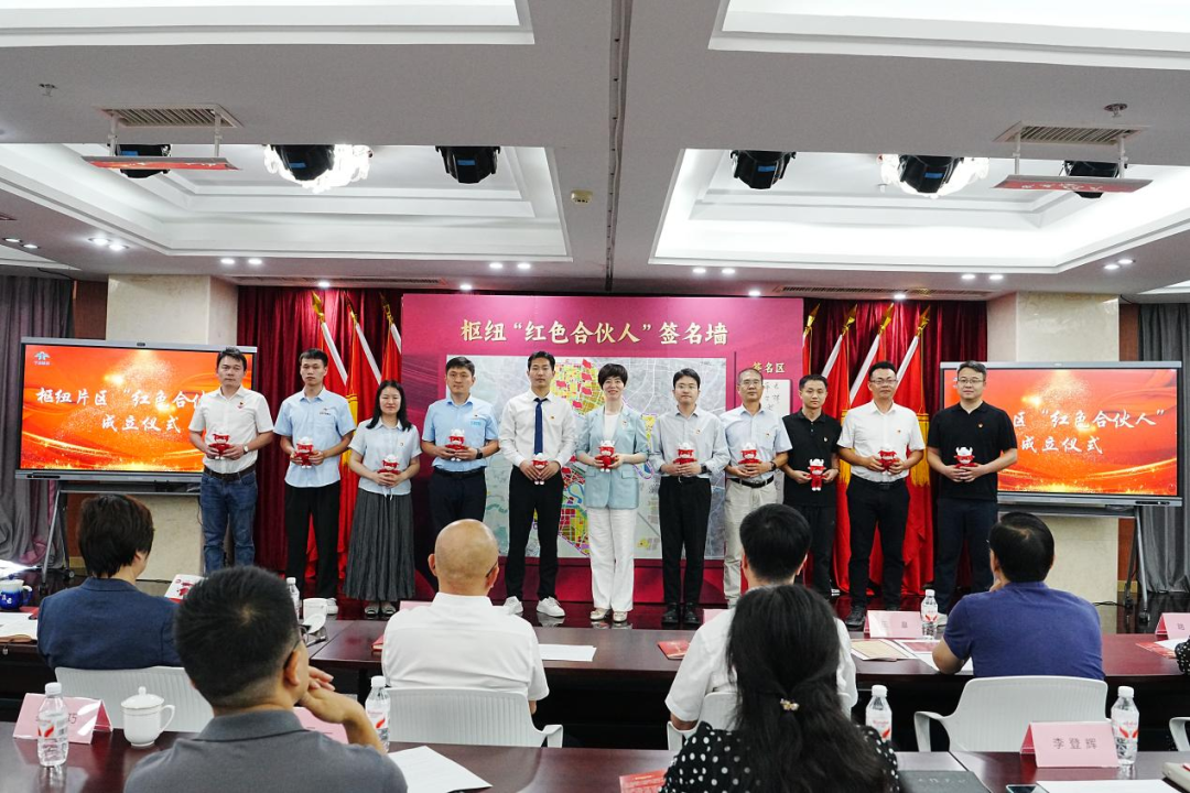 本次活動意義非凡,現(xiàn)場正式發(fā)布了“知行樞紐”黨建品牌,并由樞紐公司和各參建單位攜手成立了“紅色合伙人”黨建聯(lián)盟。在備受矚目的“紅色合伙人”黨建聯(lián)盟成立儀式上,我院黨總支書記、副院長王洪霞與其他參建單位代表一同登臺,在象征責(zé)任與協(xié)作的“寧波樞紐共建墻”上鄭重簽名,并將代表承諾的紅色旗幟堅定地插在共建版圖上。這標(biāo)志著寧波市水利院正式成為寧波樞紐建設(shè)“紅色合伙人”大家庭的一員,共同致力于以高質(zhì)量黨建引領(lǐng)精品工程建設(shè)。