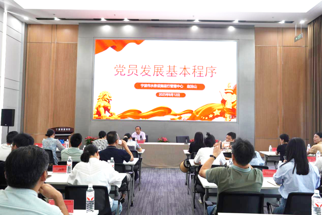 2025年9月12日上午,中共寧波市水利局直屬機關(guān)委員會在我院一樓報告廳成功舉辦黨務干部培訓。本次培訓以“銘記抗戰(zhàn)歷史 傳承紅色基因 賦能水利發(fā)展”為主題,旨在進一步提升全局系統(tǒng)黨務干部的政治素養(yǎng)和業(yè)務能力,夯實基層黨組織建設基礎。寧波市水利局系統(tǒng)各基層黨組織組織委員近三十人參加了培訓,我院相關(guān)黨務干部一同參與。