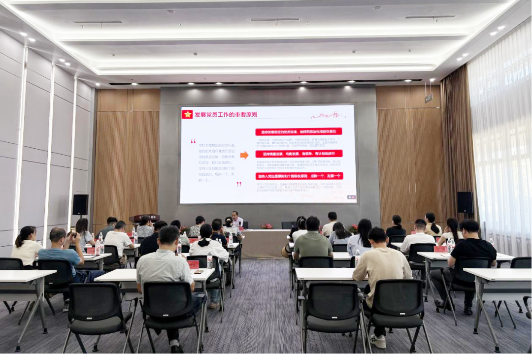 隨后,參訓人員來到我院新大樓,在參觀了院史展廳和黨建活動室之后,于一樓報告廳開展黨員發(fā)展實務專題培訓。本次培訓邀請到市水務設施運行管理中心支部委員趙治山,圍繞黨員發(fā)展工作的全流程、各環(huán)節(jié)進行了系統(tǒng)講解,重點對發(fā)展黨員工作中的標準要求、文書規(guī)范和常見問題作了詳細說明。培訓內(nèi)容緊密結(jié)合工作實際,針對性強,有效提升了參訓人員的實務操作能力。與會黨務干部認真聆聽了培訓內(nèi)容,并就實際工作中遇到的問題相互進行了交流探討。