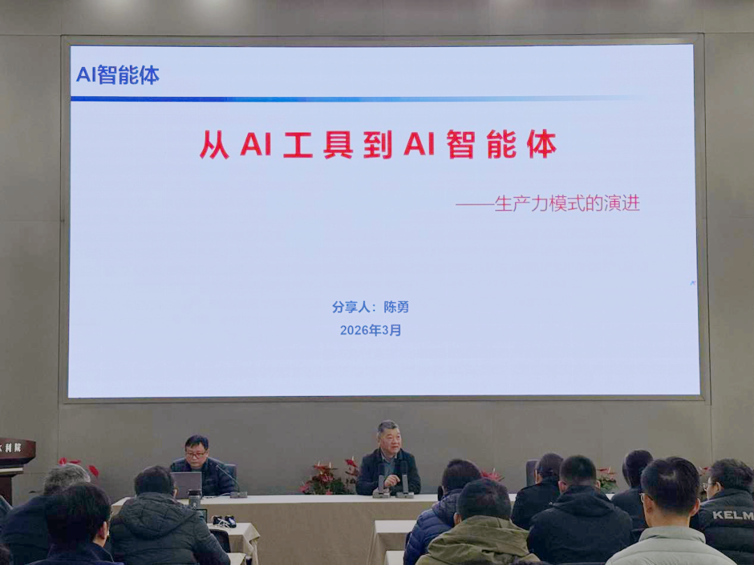 近日,我院在報告廳舉行了一場《從AI工具到AI智能體》為主題的培訓。本次培訓由我院董事長、院長嚴文武主持,智慧水利研究院軟件開發(fā)部總監(jiān)陳勇主講,院領導及各部門骨干以上員工共70余人參加培訓。