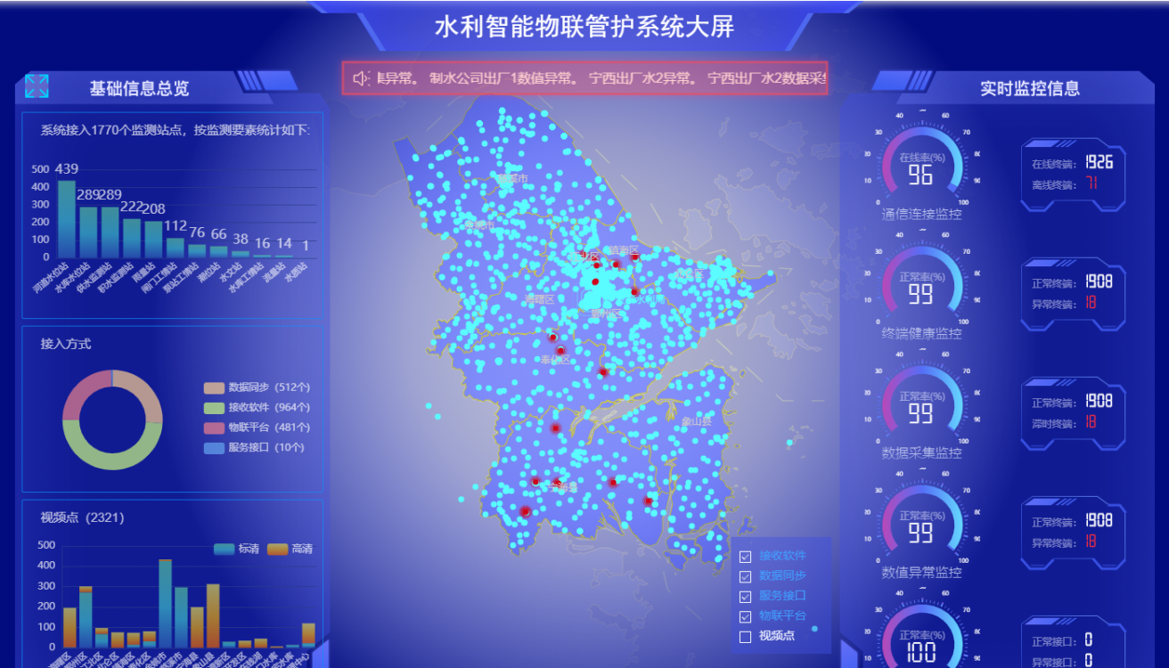 智慧水利物聯(lián)管護(hù)平臺,對水利各部門、各廠商、各類型監(jiān)測設(shè)備的,健康狀態(tài)與數(shù)據(jù)傳輸?shù)冗M(jìn)行統(tǒng)一管理,實現(xiàn)水利要素實時“感知-互聯(lián)”,強(qiáng)化水利物聯(lián)感知監(jiān)管,為智慧水利建設(shè)提供基礎(chǔ)支撐。
