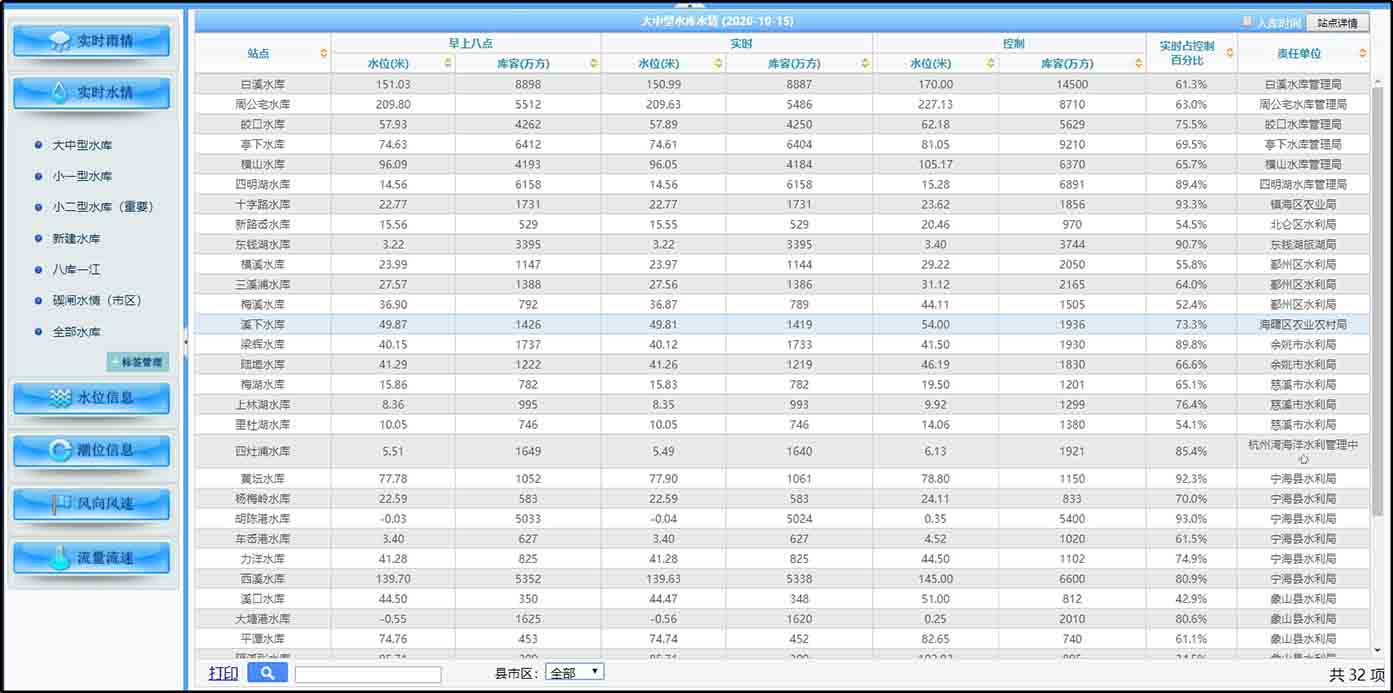系統(tǒng)采用HTML5web技術(shù),提供各類水情、雨情、潮位、流量監(jiān)測(cè)、風(fēng)向風(fēng)速等信息的發(fā)布、查詢、統(tǒng)計(jì)管理。