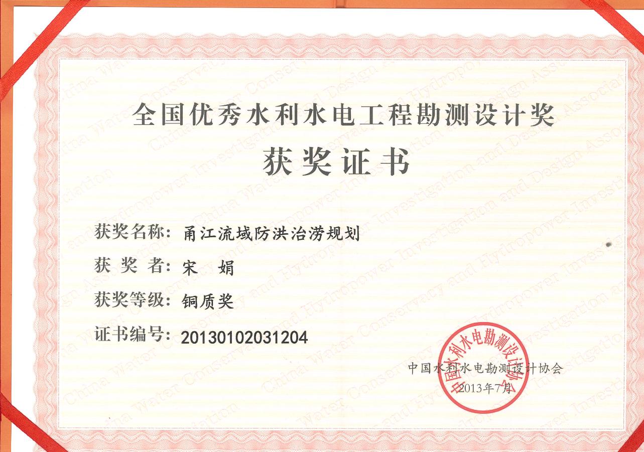 全國優(yōu)秀水利水電工程勘測設(shè)計(jì)獎