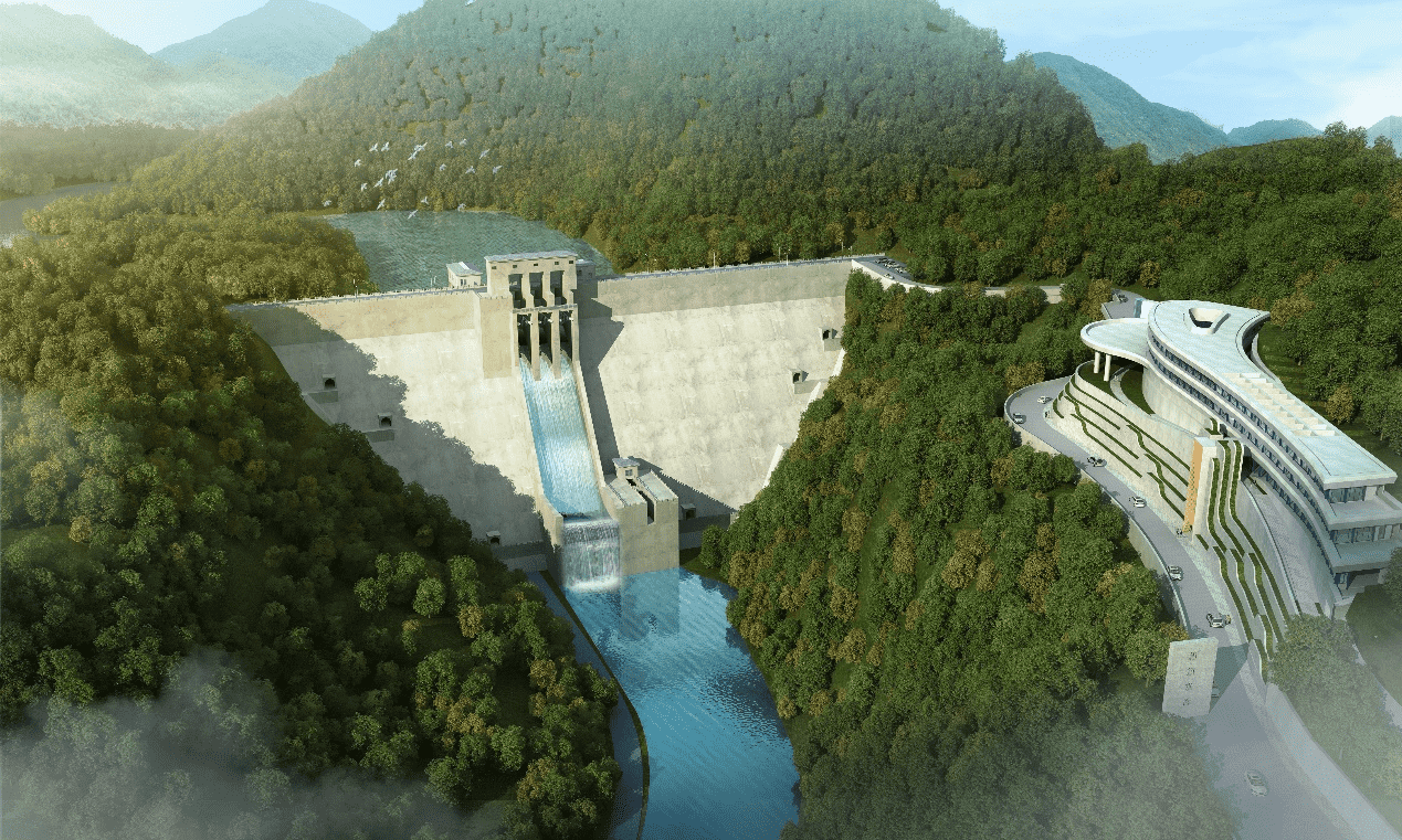 工程是一座以防洪、供水為主,兼顧生態(tài)、灌溉、發(fā)電等綜合利用的水利樞紐工程。主要由攔河壩、泄水建筑物、發(fā)電引水建筑物、發(fā)電廠房及升壓站和輸水系統(tǒng)等組成。壩址以上集水面積54.2km2,水庫校核洪水位269.98m,水庫總庫容3542萬m3,防洪庫容1002萬m3,水電站裝機容量1.8MW。