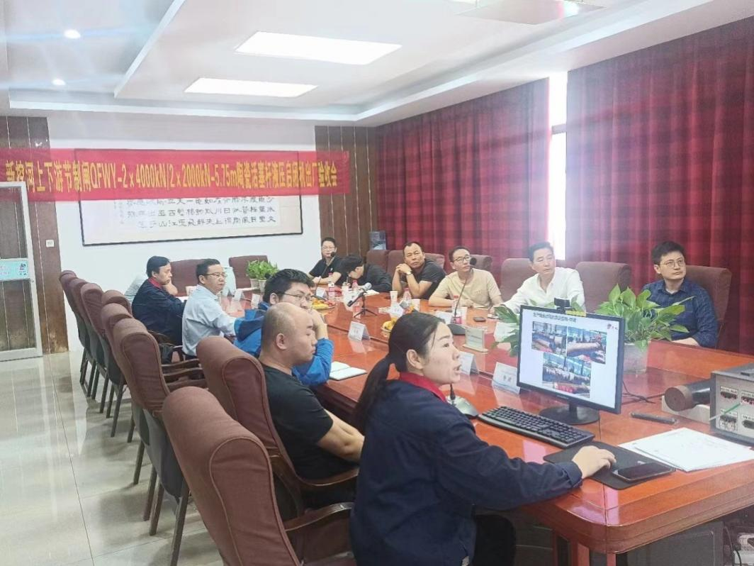 新挖河上下游節(jié)制閘液壓啟閉機(jī)出廠驗(yàn)收會議現(xiàn)場