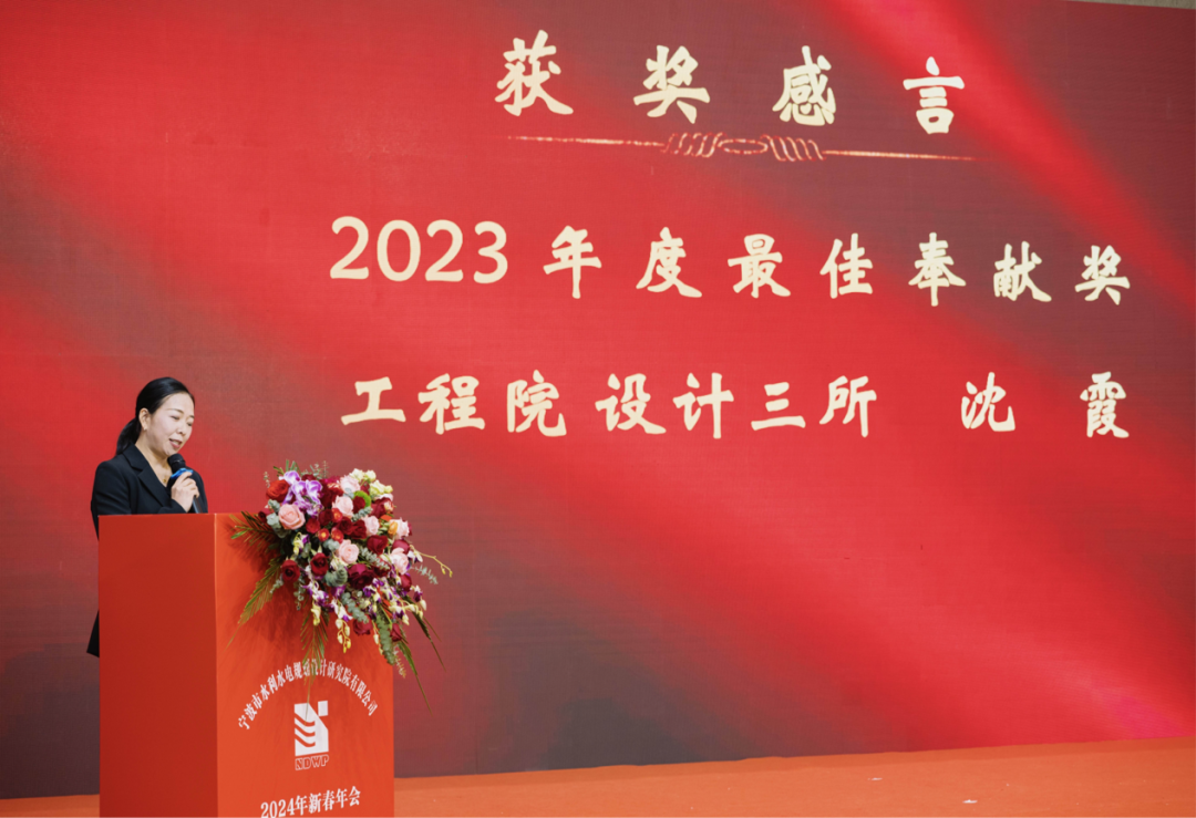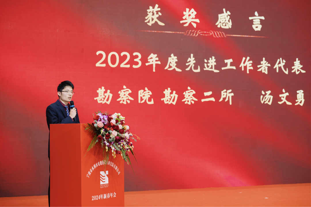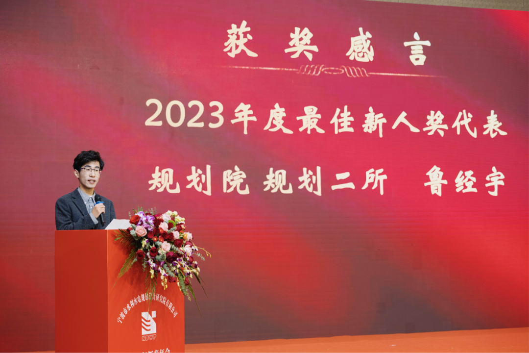 2023年度先進(jìn)工作者獲獎代表勘察院勘察二所的湯文勇、2023年度最佳奉獻(xiàn)獎獲獎?wù)吖こ淘涸O(shè)計(jì)三所的沈霞、2023年度最佳新人獎獲獎代表規(guī)劃院規(guī)劃二所的魯經(jīng)宇,先后上臺發(fā)表獲獎感言,以真摯的情感、質(zhì)樸的語言和滿滿的憧憬,表達(dá)了自己與企業(yè)共同成長過程中的勵志故事和切身感悟,表達(dá)了寧波院中堅(jiān)力量、團(tuán)隊(duì)骨干和新兵后輩的豪情壯志。